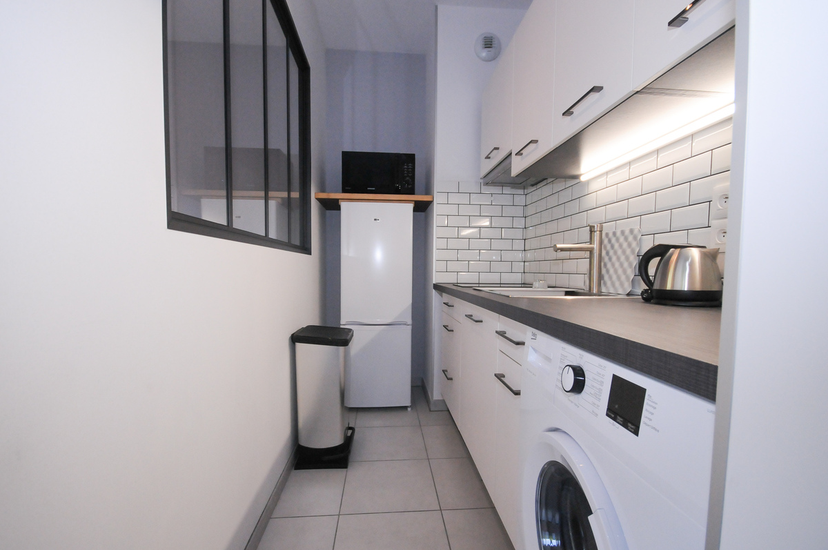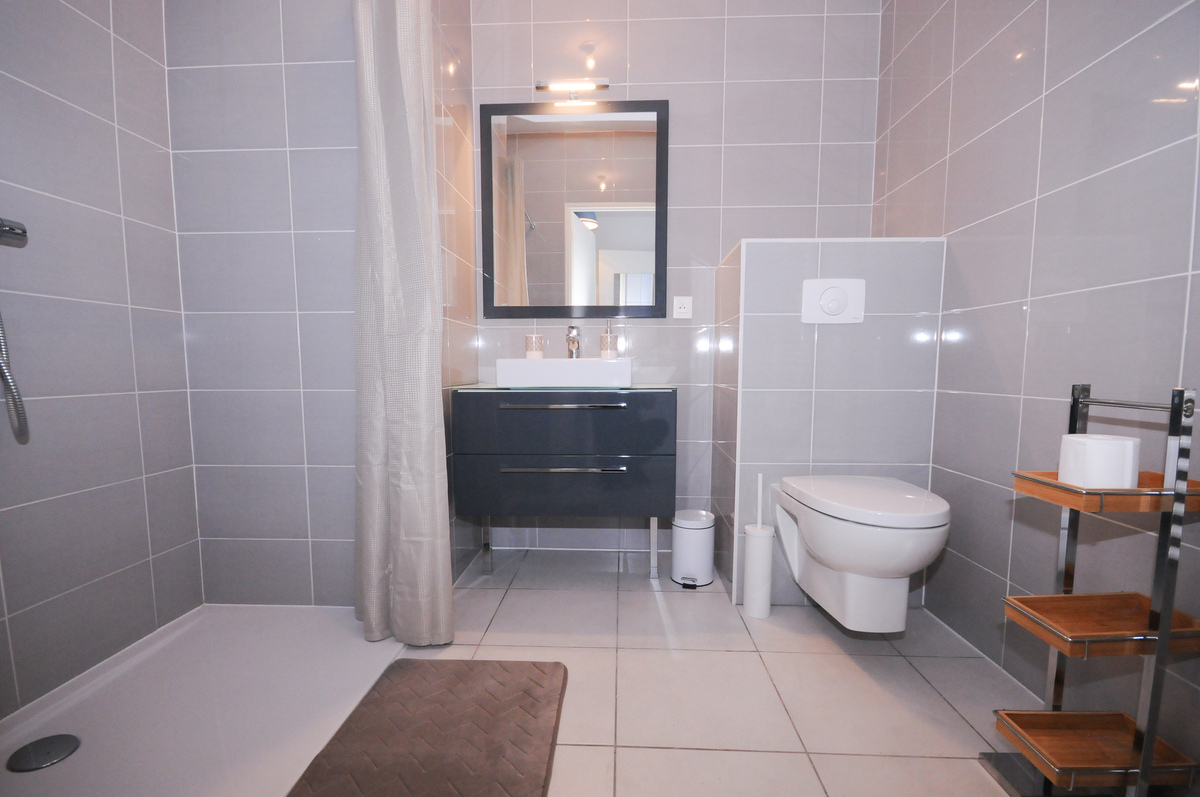 L’appartement est composé d’une entrée avec rangement desservant une pièce de vie donnant sur une terrasse abritée de 13 m3 et d’un jardin de 31 m2. Un coin nuit aménagé avec dressing et un coin cuisine tout équipé. Une grande salle d’eau avec douche à l’italienne.