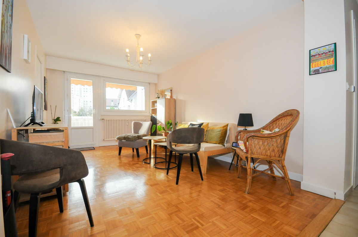 Appartement traversant avec balcon sans vis-à-vis, lumineux, vendu avec sa cave. Copropriété soignée et entretenue. Faibles charges électriques.