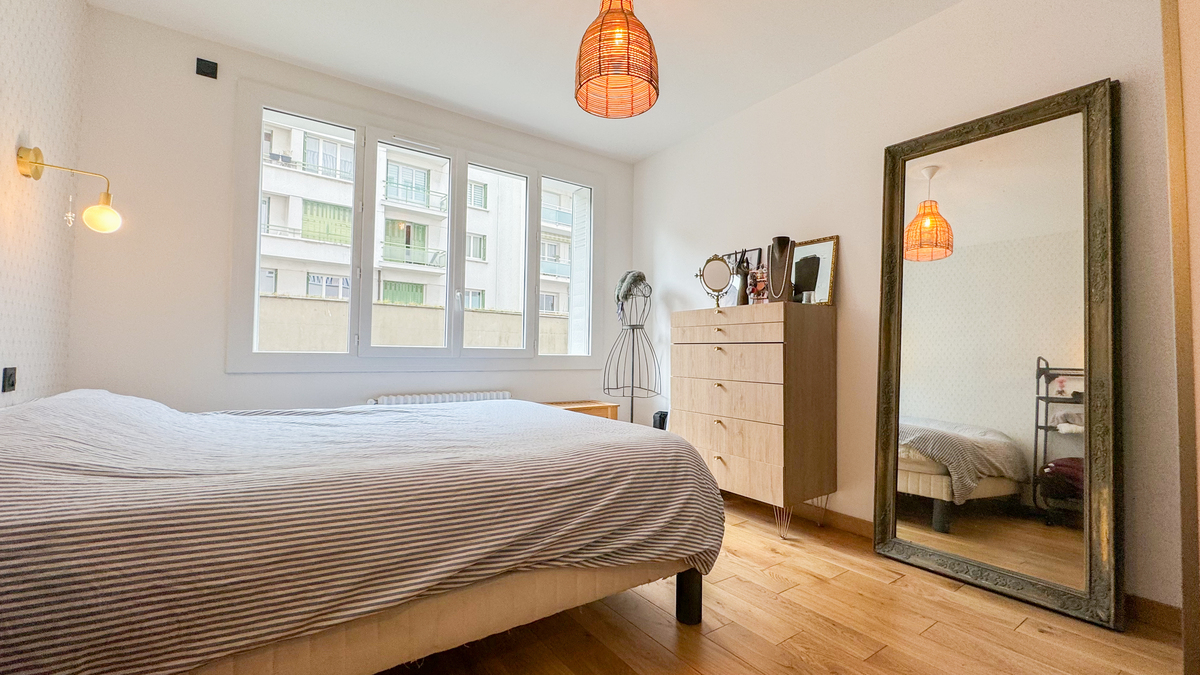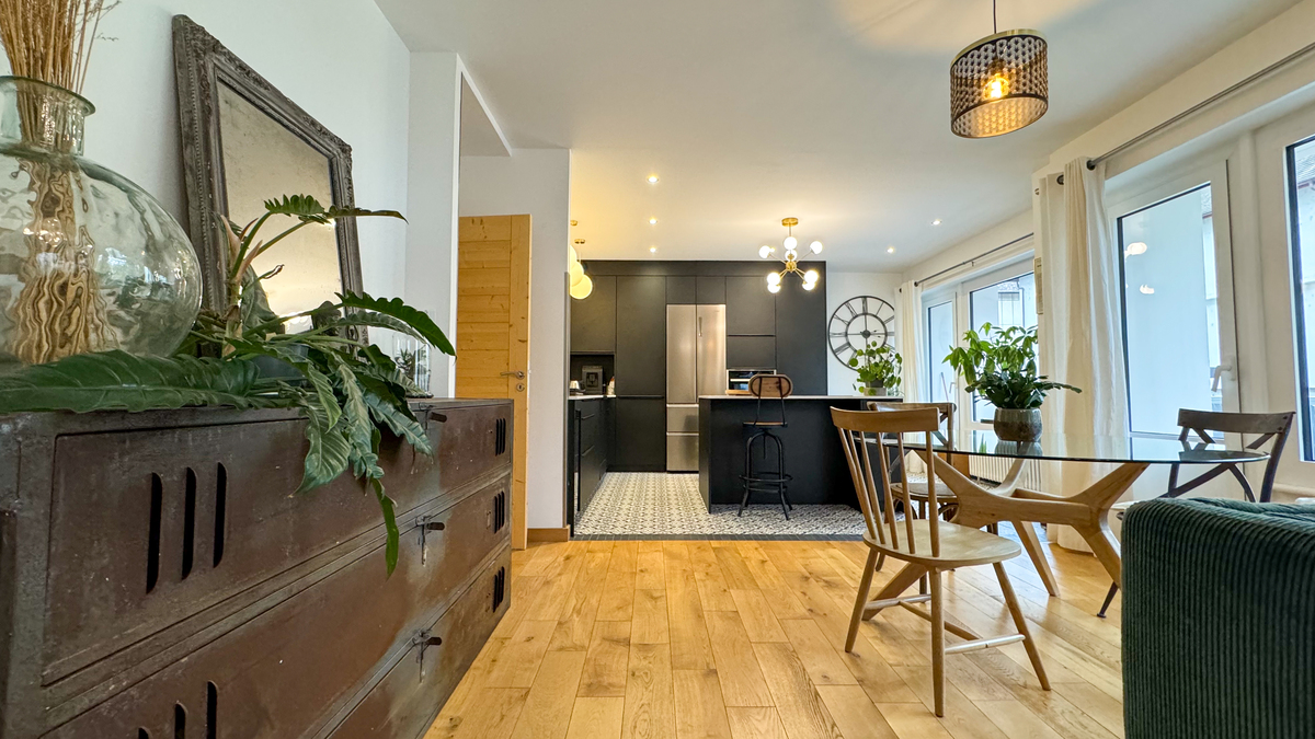 Exclusif. Appartement T4 à vendre sur Annecy, centre ville proche du lac : charmant 4 pièces refait à neuf de 101 m2 secteur Bonlieu et Haras. Belle pièce de vie de 43 m2 plein sud avec cuisine ouverte et spacieuse. Parquet massif, une salle de bains et une salle d’eau, 2 WC 3 chambres coté cour très au calme. Beaucoup de rangements dans tout le bien.
