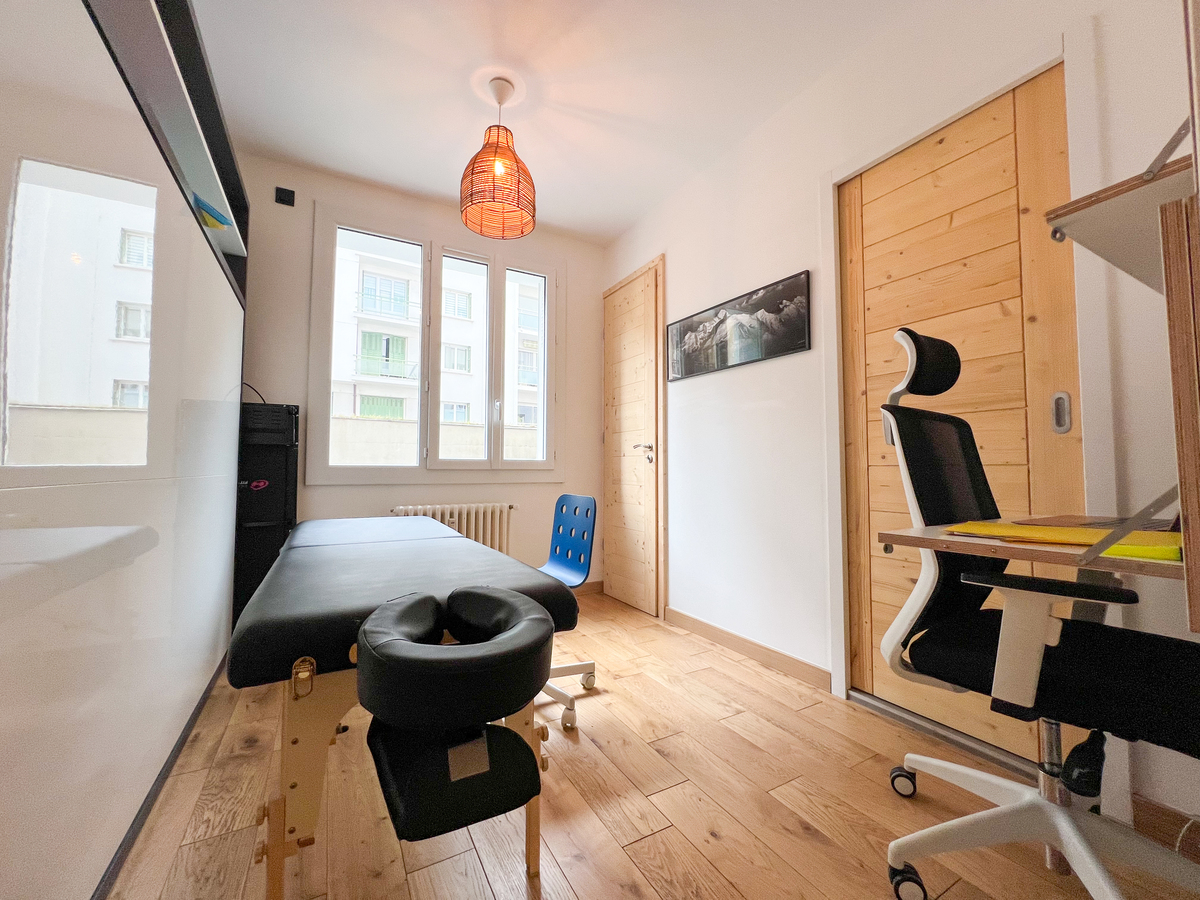 Idéal pour les professions libérales type ostéo ou infirmier cherchant à allier confort et fonctionnalité avec son lobby d’entrée, WC et salle de soins indépendants du reste de l’appartement.